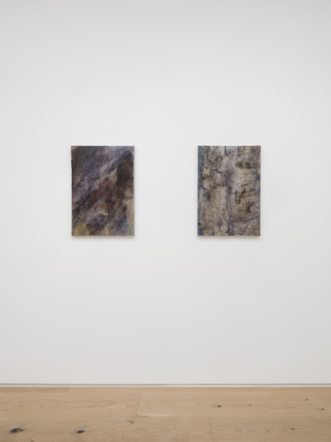 Images of the natural world, including seashells, stones, waves, flowers and tree bark, form the basis of Chung’s compositions. Retrieved from online databases and manipulated using 3D digital modelling software, these motifs are transferred directly onto canvas or transparent sheets of gel medium. Since 2017, she has worked with gel medium – a clear, viscous substance used to bind pigments in acrylic paint – to create multi-layered reliefs. While wet, the material is shaped into creases and folds that gather across the picture plane like a skin. In doing so, she brings virtual imagery back into the physical realms of painting and sculpture, and turns a conventional painting material into a tool for rendering real, rather than illusory, volume.