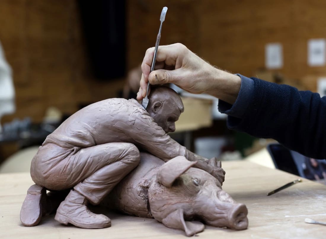 While his peers courted the limelight, Mueck, who came to art from a successful career in cinema as a prop maker and puppeteer (and played the giant Ludo alongside David Bowie in the 1986 fantasy film Labyrinth), rarely grants interviews. I’d been invited to watch him at work with no guarantee he would stop to answer even a single question about his art. “By not talking about it, he makes the viewer bring their own meaning,” says Clarke.