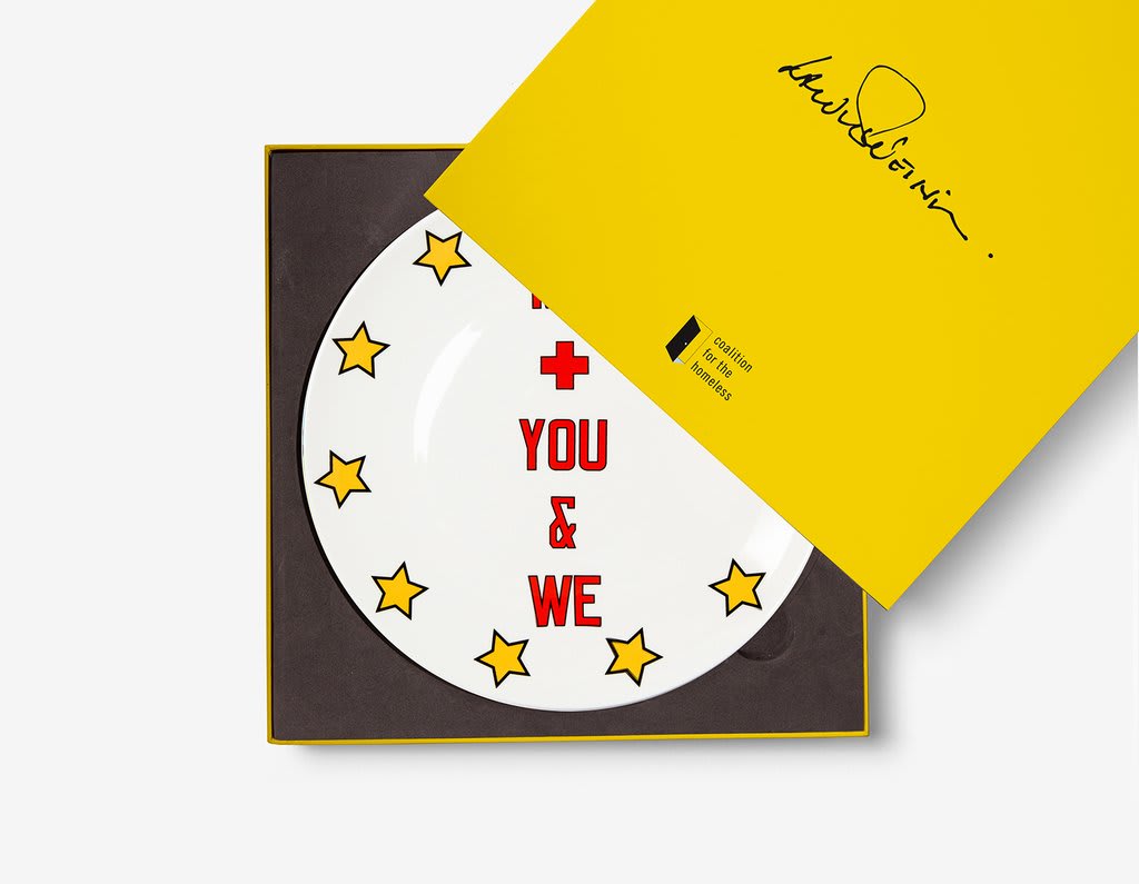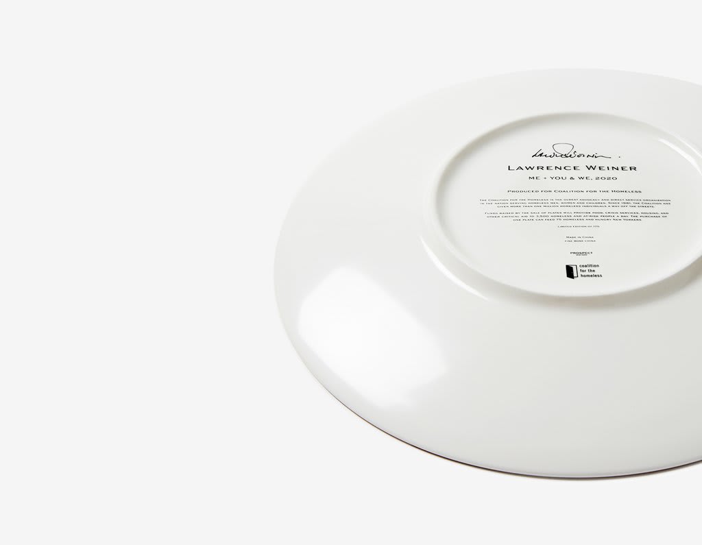 In lieu of this year’s annual ARTWALK NY event, which was cancelled due to the COVID-19 pandemic, the Artist Plate Project was created to support the important work of the Coalition for the Homeless. The Coalition is honored to work with 50 world-renowned artists to create limited-edition dinner plates produced by Prospect. All of the funds raised by the sale of plates will provide food, crisis services, housing, and other critical aid to thousands of people experiencing homelessness and instability. The purchase of just one plate can feed 75 homeless and hungry New Yorkers. The plates will be available for purchase on November 16th.