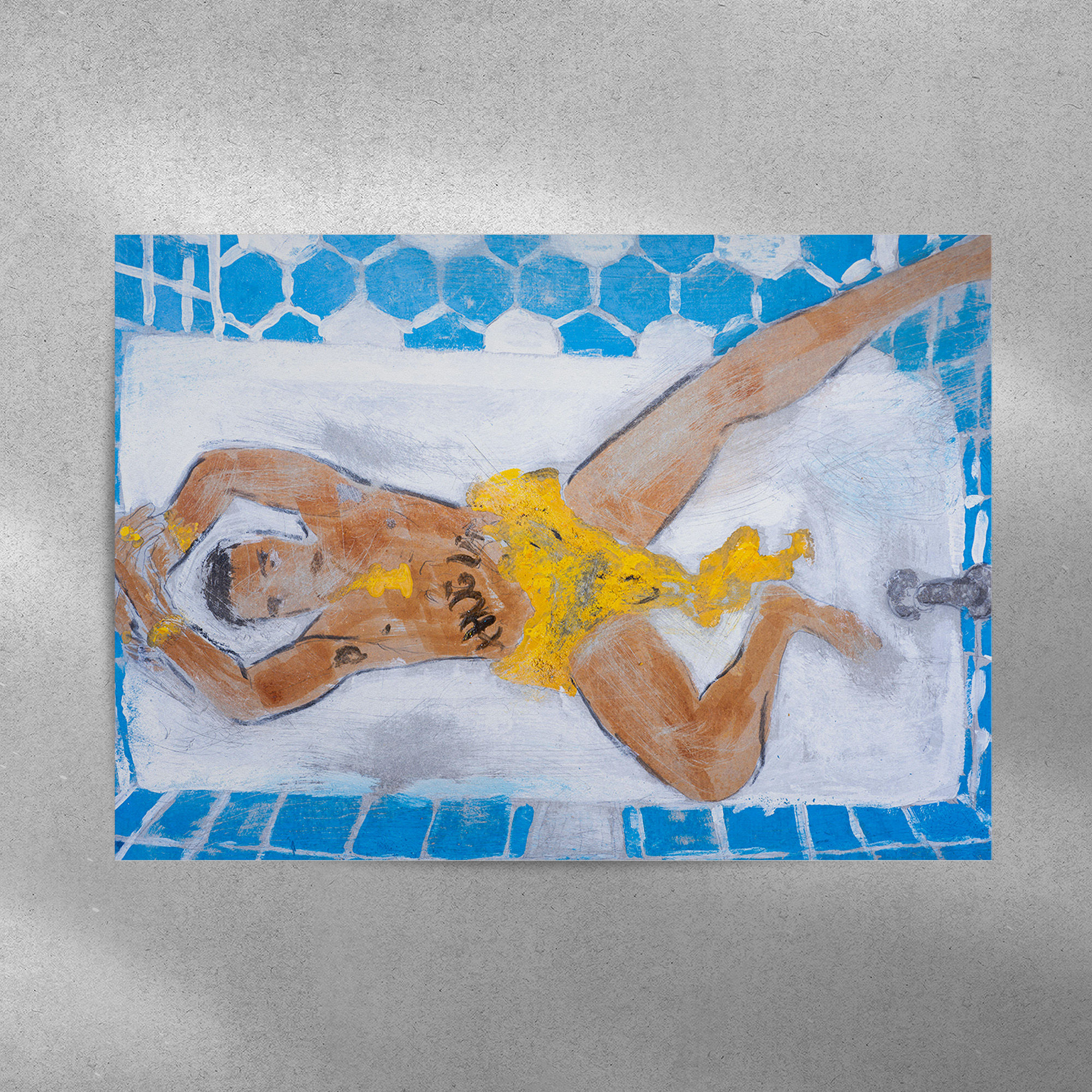 The works on view reflect a cross-pollination of many influences. Barrington channels the bather, an enduring theme in art history which he connects to Paul Cézanne, Pablo Picasso and Édouard Manet, among others, through hip-hop icons, basketball players and film stars. His new paintings include reworkings of David LaChapelle’s photograph of Tupac lying in the bath draped in jewels, and of Holly Golightly in her bathrobe. This chorus of figures comes together to tell the story of Barrington’s New York City, where sexuality, fashion and self-presentation meld with ideas of struggle and hope. As the artist says: ‘That’s what hip-hop is’.