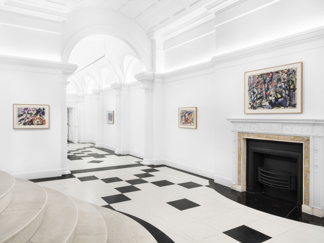 By the 1980s, Vedova was widely regarded as one of the most influential abstract Italian artists of his time, having exhibited at the Venice Biennale in 1947 and the legendary documenta exhibitions I, II and III (1955, 1959 and 1964) in Kassel. His invitation to exhibit once more in documenta 7 and the Venice Biennale in 1982 demonstrated his enduring significance for a new generation of artists. His paintings from this period attest to curator Rudi Fuchs’ aim that the documenta participants would ‘do justice to the dignity of art’, freeing it from the ‘various constraints and social parodies it is caught up in’, through a selection of works with the power to show themselves ‘unrestrainedly’.