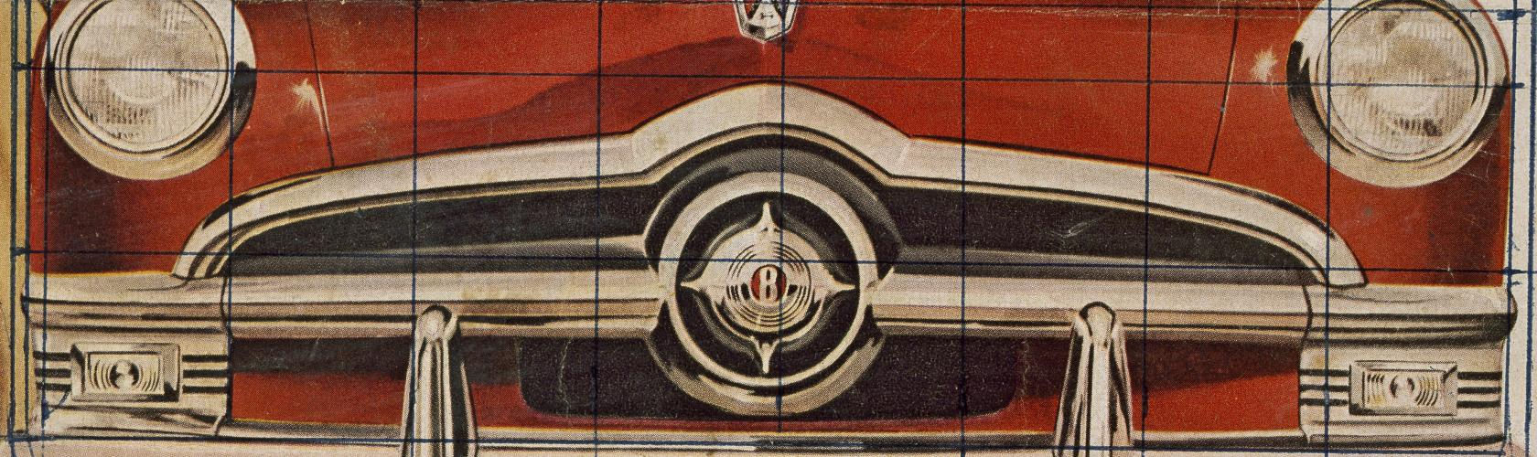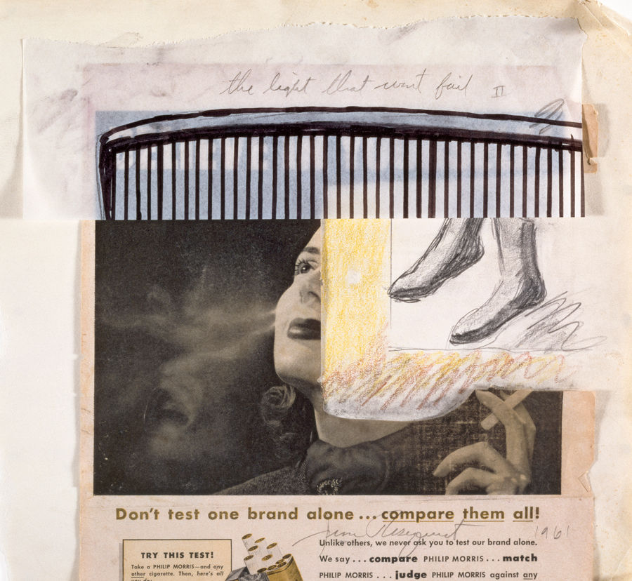 James Rosenquist, source and preparatory sketch for The Light That Won’t Fail I, 1961, cropped magazine advertisement, paper, marker, pencil and crayon, 31 × 33 cm. Photo: Peter Foe