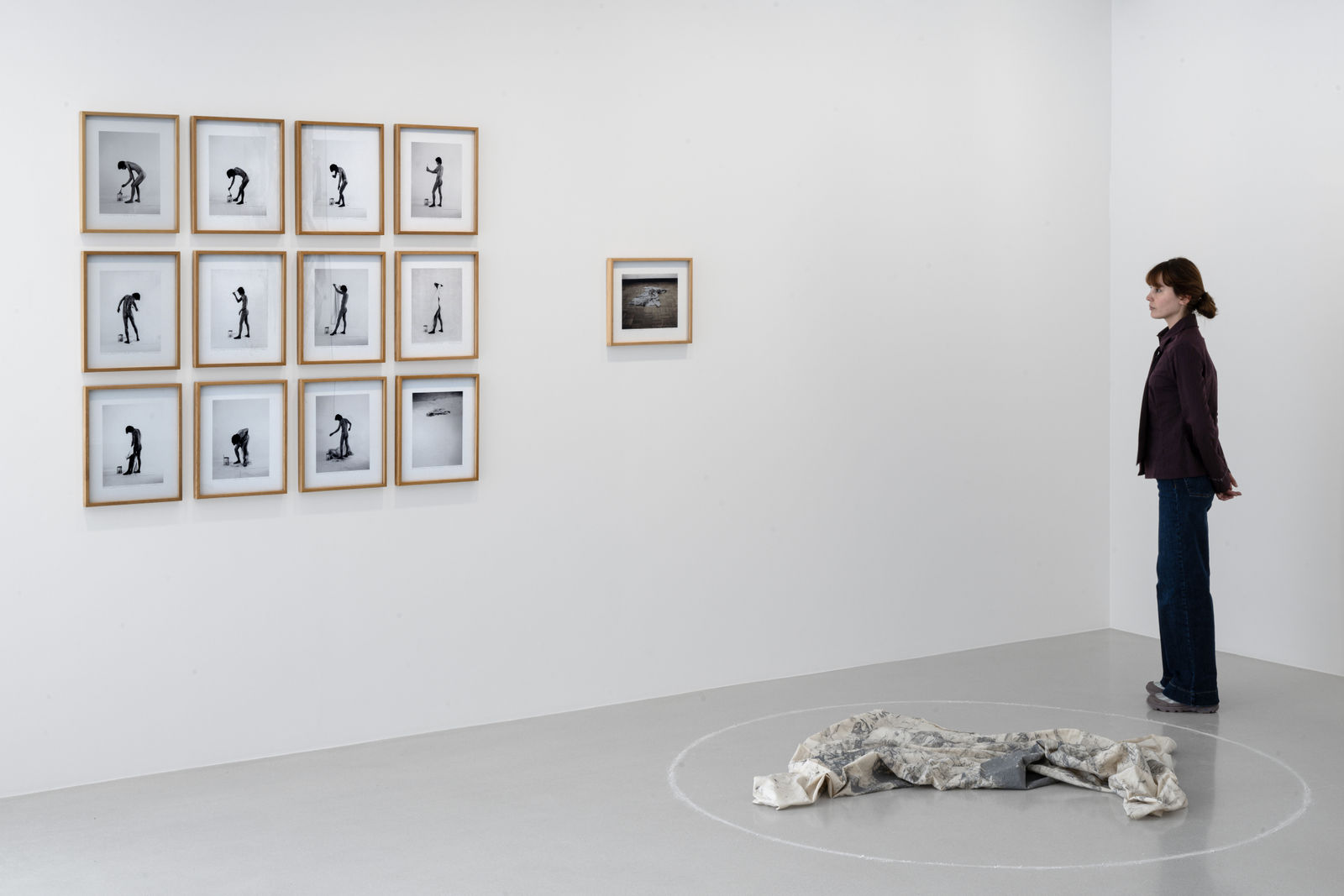 The exhibition presents several further examples of the artist’s experimental installations and performances from the 1970s through documentation and sculptural artefacts that become relics of the original events. Among them, a group of black-and-white photographs testify to the unfolding of the 1977 Painting (Event 77-2), in which a nude Lee Kang So paints his own body before wiping himself down with a canvas cloth: a gesture the artist relates to Yves Klein’s Anthropometries.